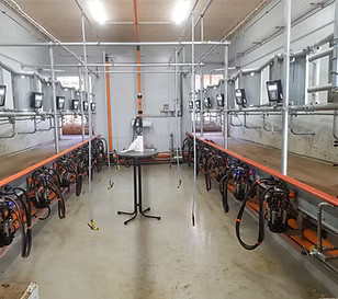 Fischgrat Melkstand in stützenfreier Niro Ausführung