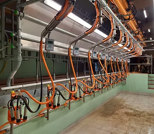 - Der Melotte Positionierungsarm ist speziell für Melkstände wie Side by Side oder 60° Fischgräte konstruiert